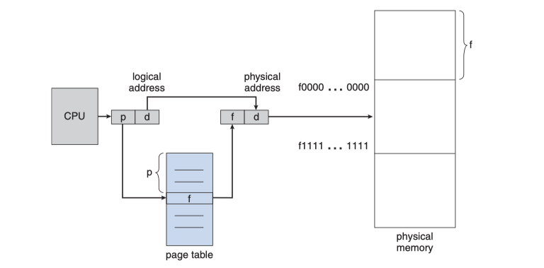 - 프로세스의 처음 페이지가 할당된 프레임들 중 하나에 로딩되고, 그 프레임 번호가 페이지 테이블에 기록된다. 그리고 테이블에 기록되는 과정이 반복된다.