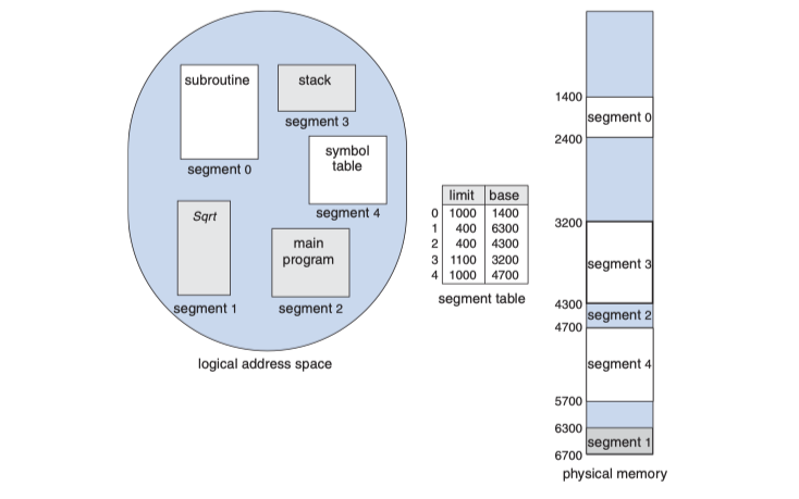 - 논리 주소 공간은 세그먼트들의 집합으로 이루어진다.