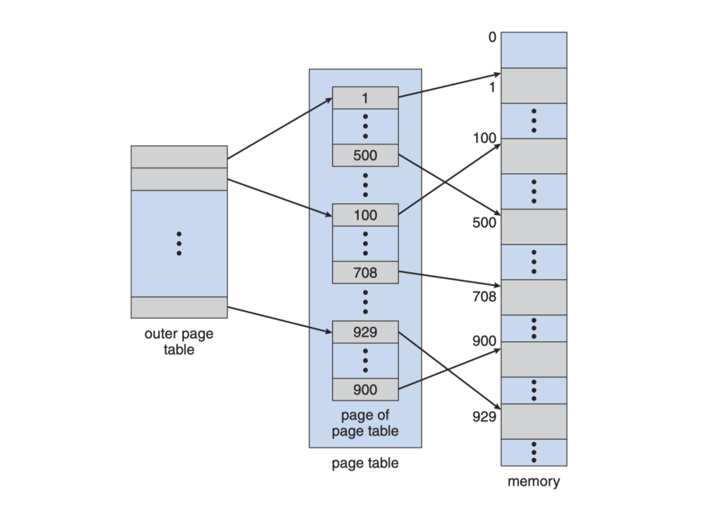 - 페이지 테이블 : 메인 메모리에서 각 페이지가 점유하는 주소를 갖고 있다.