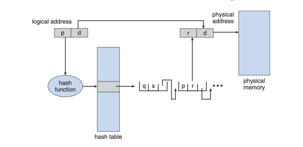 - 32비트보다 주소가 크다면 해싱을 이용해 페이지 테이블을 관리하자 (virtual address table 개념)