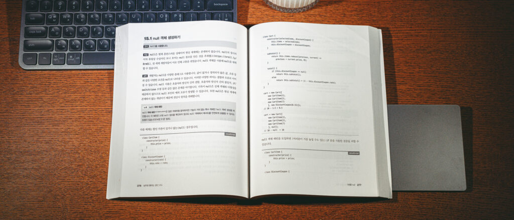 이 책은 그 중간의 간극을 매꿔 줄 수 있는 책이다. 원론적인 이야기 보다, 문제인식 – 해결방법 – 레시피 순으로 간결하고 빠르게 지나간다. 하나의 아이템은 대부분 3 페이지를 넘지 않는데, 그러면서도 before – after 코드를 보여준다. 각 아이템의 끝자락에는 같이 읽어볼만한 다른 아이템을 같이 소개한다. 적은 활자로 많은 내용을 담으면서도, 주니어들이 궁금해 할 만한 단어 해설도 충실히 포함하고 있다.