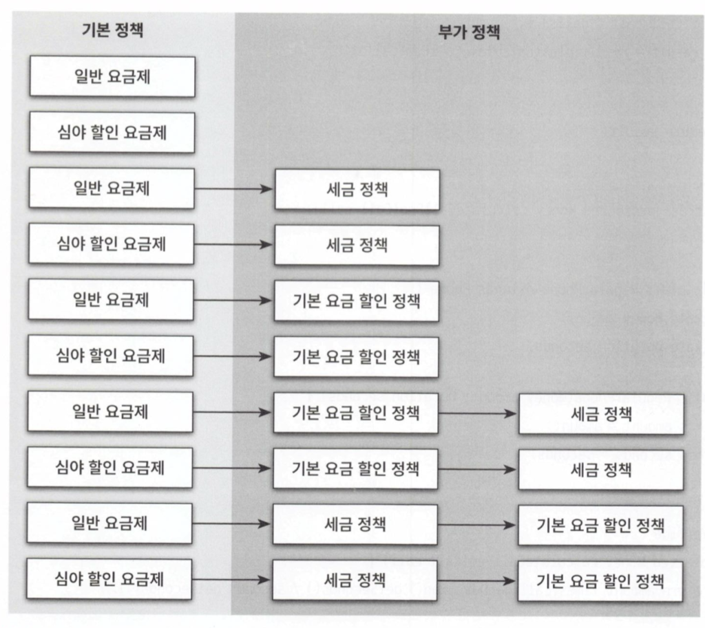 세금 정책을 적용한 후에 기본 요금 할인 정책을 적용할 수도 있고,