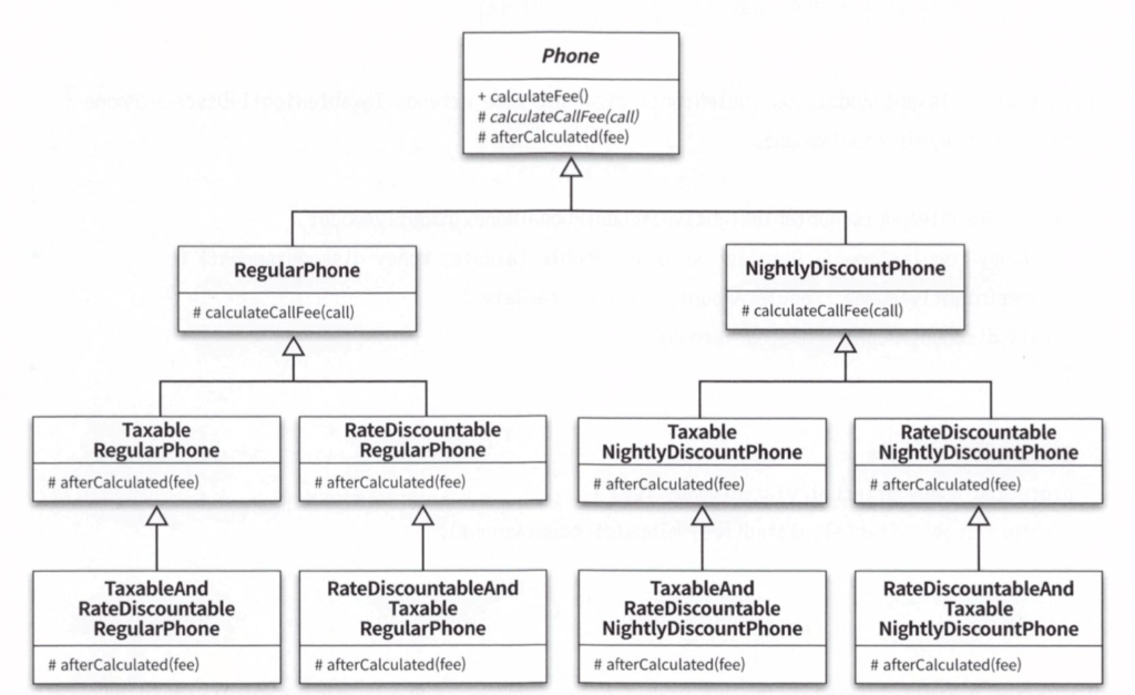 일반 요금제와 기본 요금 할인 정책을 조합하고 싶다면 RegularPhone을 상속 받는 RateDiscountableRegularPhone 클래스를 추가하면 된다.
